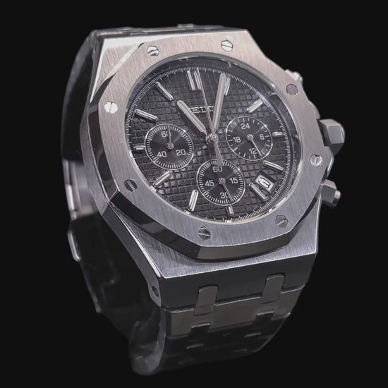 Inspired by the iconic "R" Oak this Luxury Mod embodies luxury and everyday reliability. Hand-assembled with elite VK63 hybrid movement, this 40mm chronograph offers both excellence and accessibility.