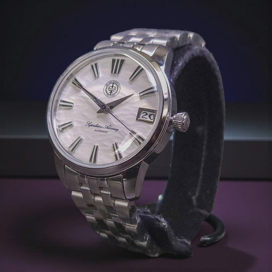 This Luxury Mod captures the essence of Grand Seiko Dial built in a 33 mm Presage style case, a legendary design philosophy, offering watch enthusiasts a truly exceptional timepiece. This truly one-of-a-kind ladies watch combines the exceptional designs of two legendary watches.